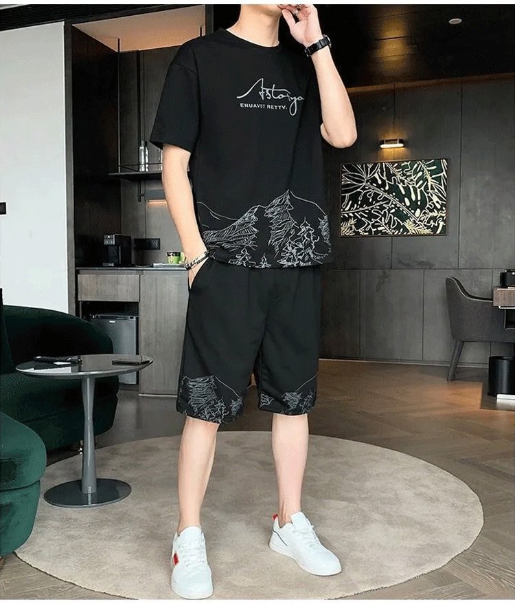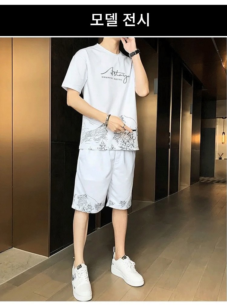 프린트 패션 반팔 티셔츠 세트