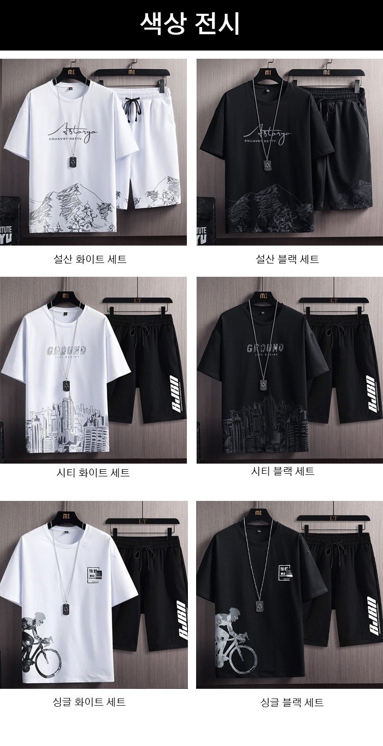 프린트 패션 반팔 티셔츠 세트